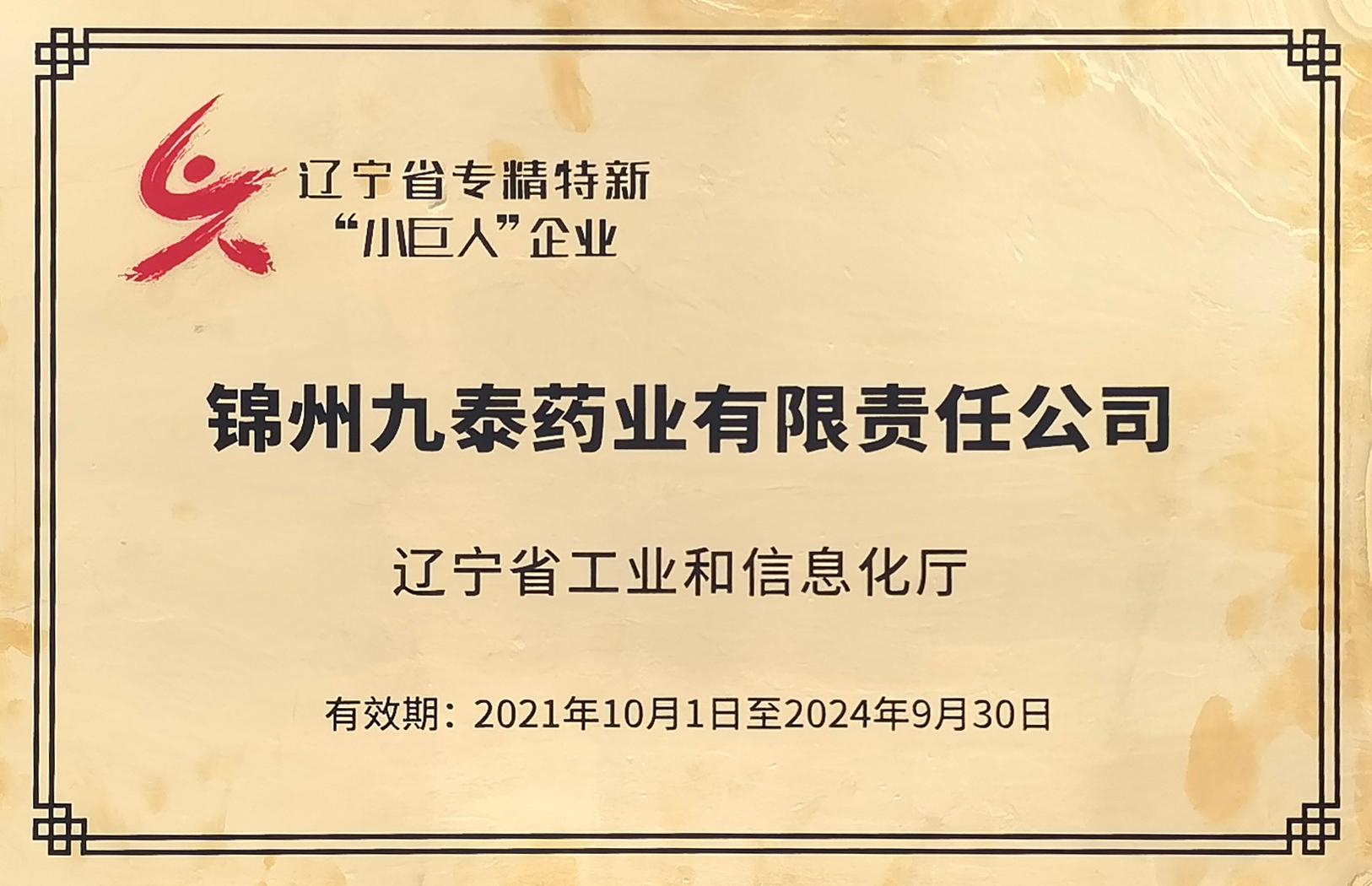 今年,我公司榮獲2021年遼寧省專精特新“小巨人”企業稱號,該項目的認定成項,標志著我公司在本省乃已居于細分...
