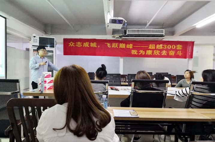公司營銷中心市場部繼(ji)續(xu)加大對目標終端的產品(pin)知識培訓力度,圖為公司市場部產品(pin)經理(li)吳(wu)京男(nan)在湖北省(sheng)對公司代理(li)商(shang)進行產品(pin)培訓。