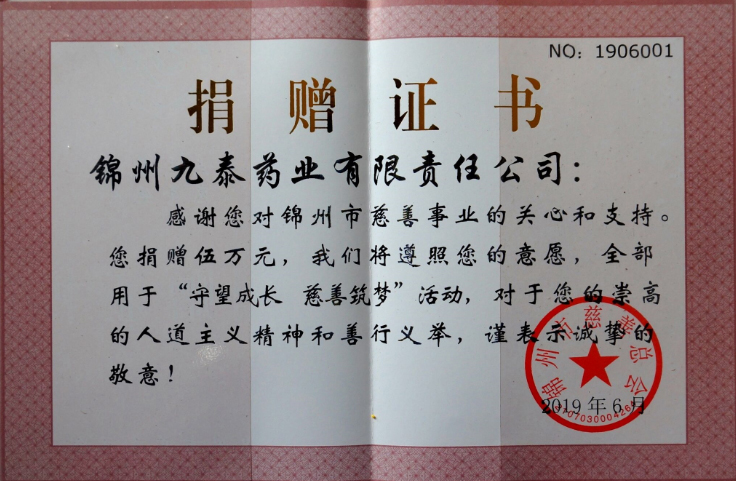 錦州(zhou)市慈(ci)善總(zong)會授予(yu)公司(si)“守望(wang)成長,慈(ci)善筑夢”活動優秀慈(ci)善贊助(zhu)單位。