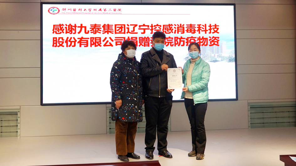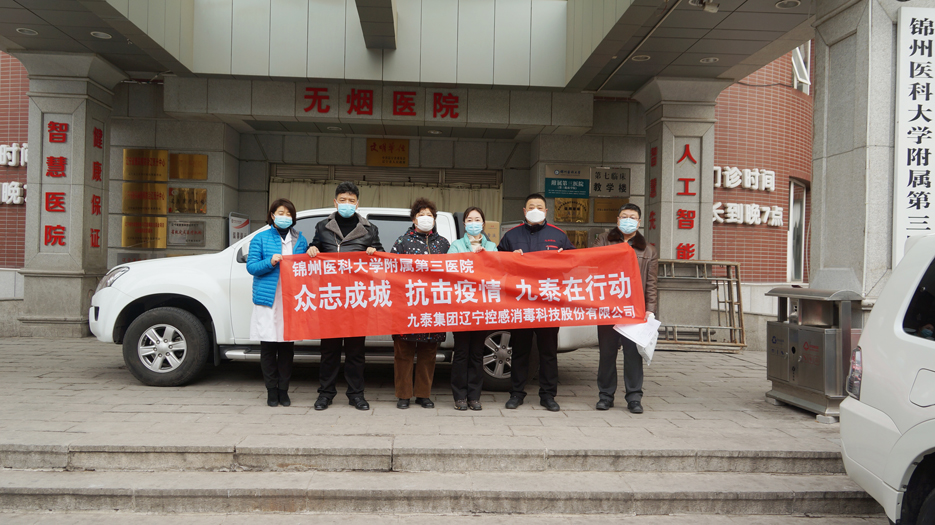 2月11日、25日,錦(jin)州(zhou)(zhou)九泰集(ji)團積(ji)(ji)極(ji)踐(jian)行企業社會責任,向(xiang)錦(jin)州(zhou)(zhou)醫(yi)科大學附屬(shu)一(yi)院和附屬(shu)三院開展愛(ai)心(xin)捐贈(zeng)活(huo)動,送(song)去75%乙醇消毒(du)(du)液,有效(xiao)緩(huan)解了(le)新型冠狀病(bing)(bing)毒(du)(du)疫情(qing)(qing)防控(kong)物資(zi)匱(kui)乏壓(ya)力,發揮了(le)積(ji)(ji)極(ji)的作用(yong)。對打贏(ying)新型冠狀病(bing)(bing)毒(du)(du)疫情(qing)(qing)阻擊戰提(ti)供了(le)物資(zi)保(bao)障。